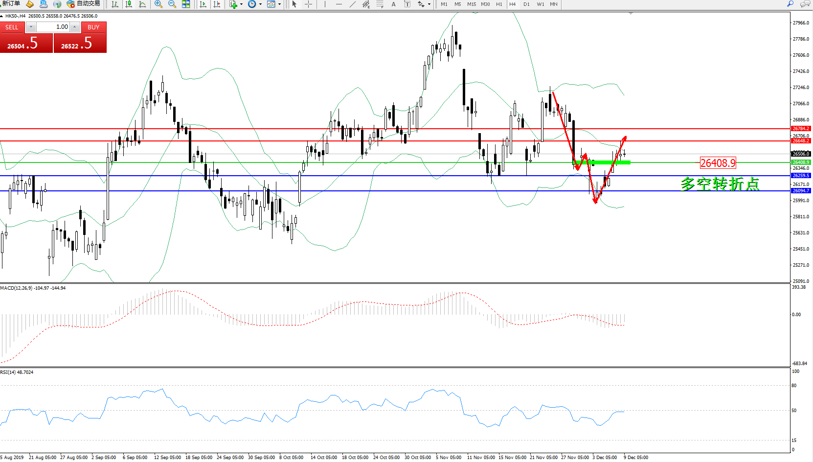 恒指HK50 ——4小时K线图显示: