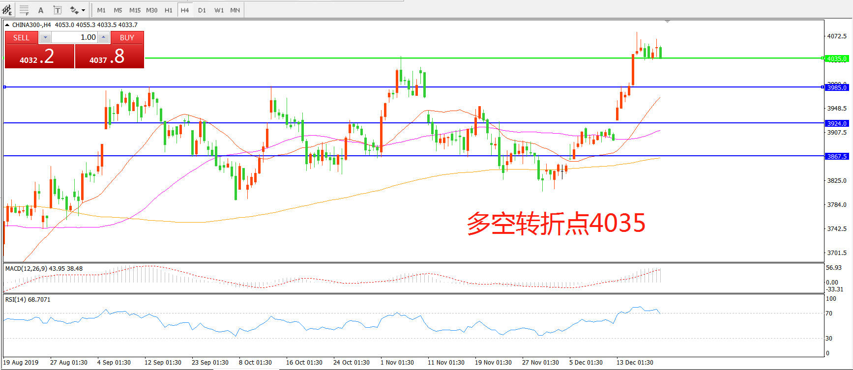 多空转折点:4035.00