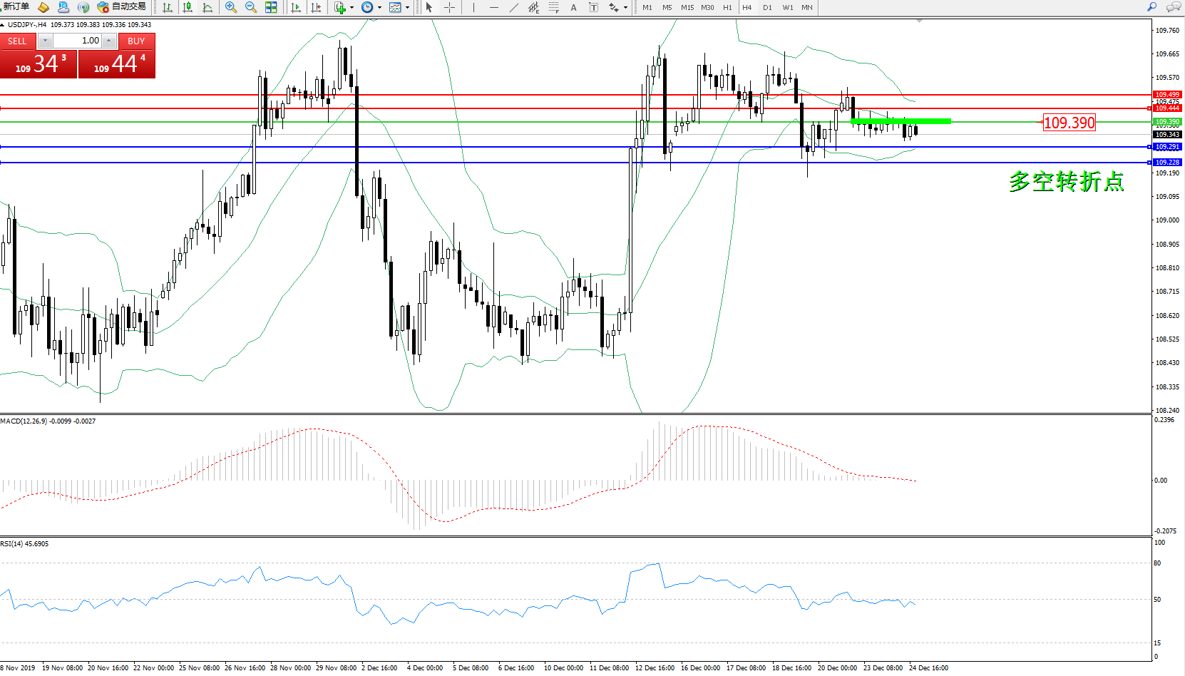 交易策略:109.390下方看跌,目标109.291、109.228