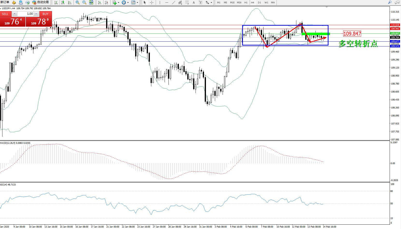 交易策略:109.847下方看跌,目标109.677109.573