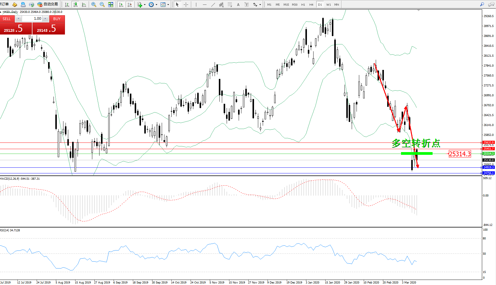 恒指HK50 ——日K线图显示: