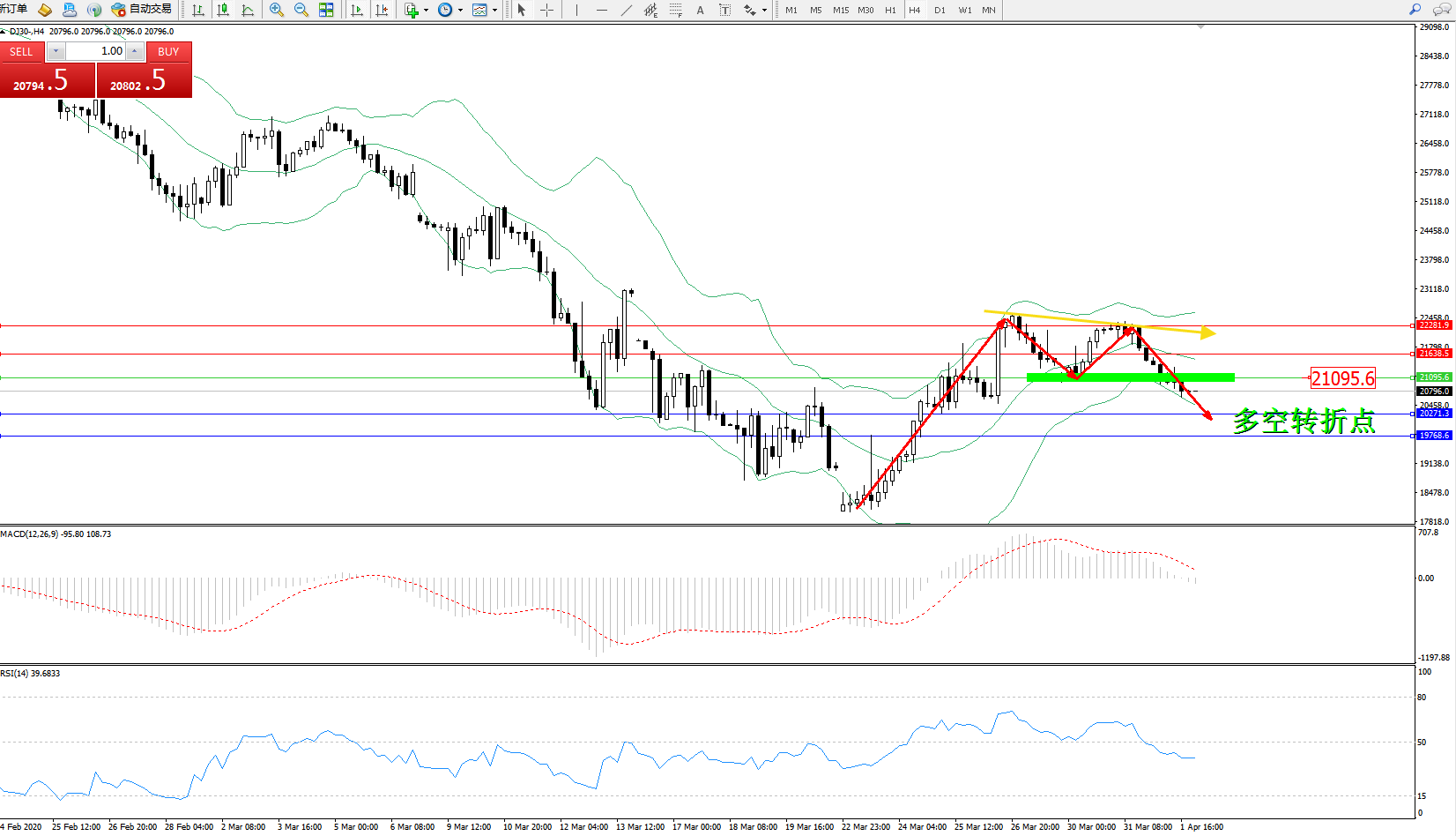 道琼斯指数4月1日(周三)收盘下跌973.70点,跌幅4.44%,报20943.51点。美股续挫,道指初步收跌近千点。航空股、在美上市英国银行股跌势惨重。私营部门就业人数自2017年9月以来首次下降。美国3月ADP就业人数减少2.7万人,小于市场预期,3月报告使用的数据截至3月12日,没有反映疫情对整体就业情况的全面影响;3月份的数据并没有完全反映出新冠肺炎疫情对就业形势的最新影响,包括2020年3月26日公布的失业申请。在海外疫情继续恶化的背景下,投资者继续选择美元现金以防止流动性危机再现,尽管美联储采取了各种行动以缓解美元荒,但经济似乎并未到最坏的时候,投资者预期也更加悲观,继续关注周四的初请失业及周五的美国非农。