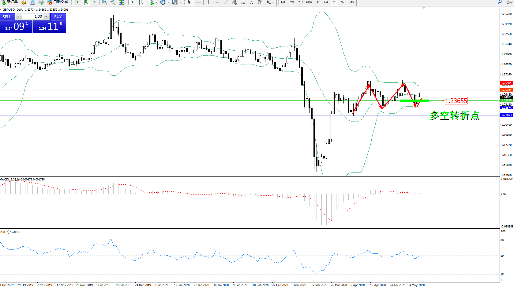 交易策略:1.23655上方看涨,目标1.250441.25984
