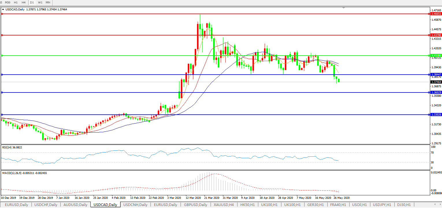 美元兑加元USDCAD 日线图: