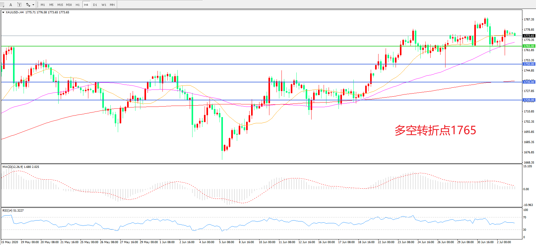 交易策略:在1765.00之上看涨,目标1780.00 1800.00
