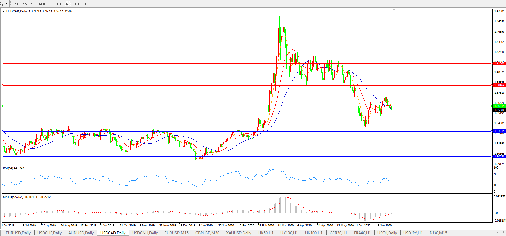 美元兑加元USDCAD 日线图: