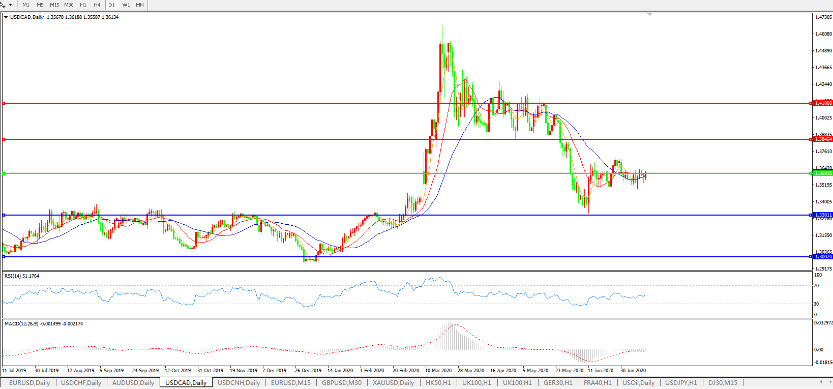 美元兑加元USDCAD 日线图: