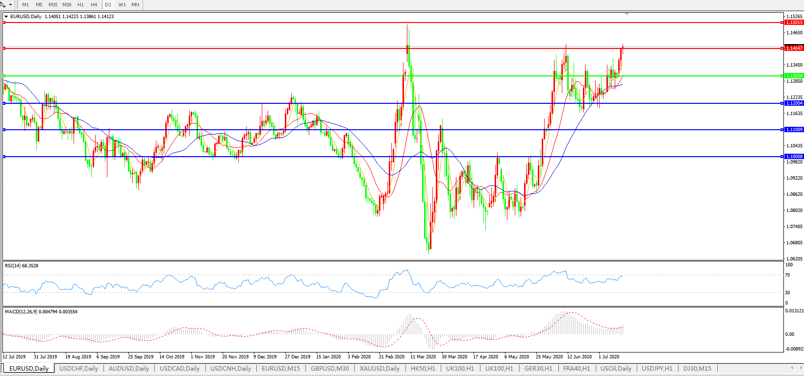 欧元兑美元EURUSD   日线图: