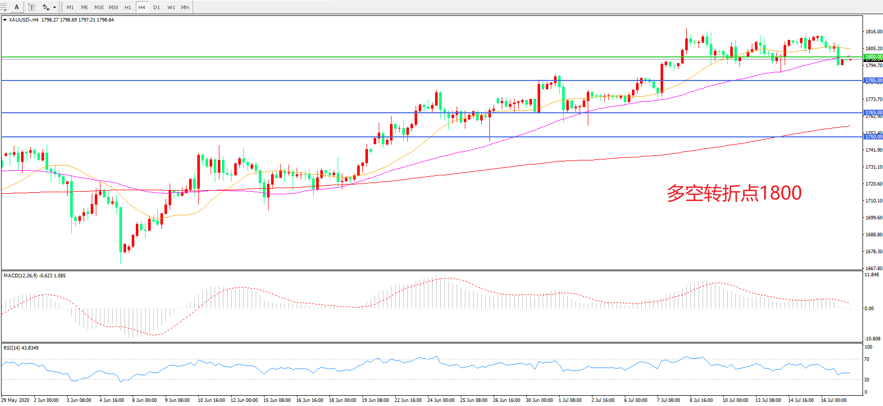 交易策略:在1800.00之上看涨,目标1820.00 1845.00