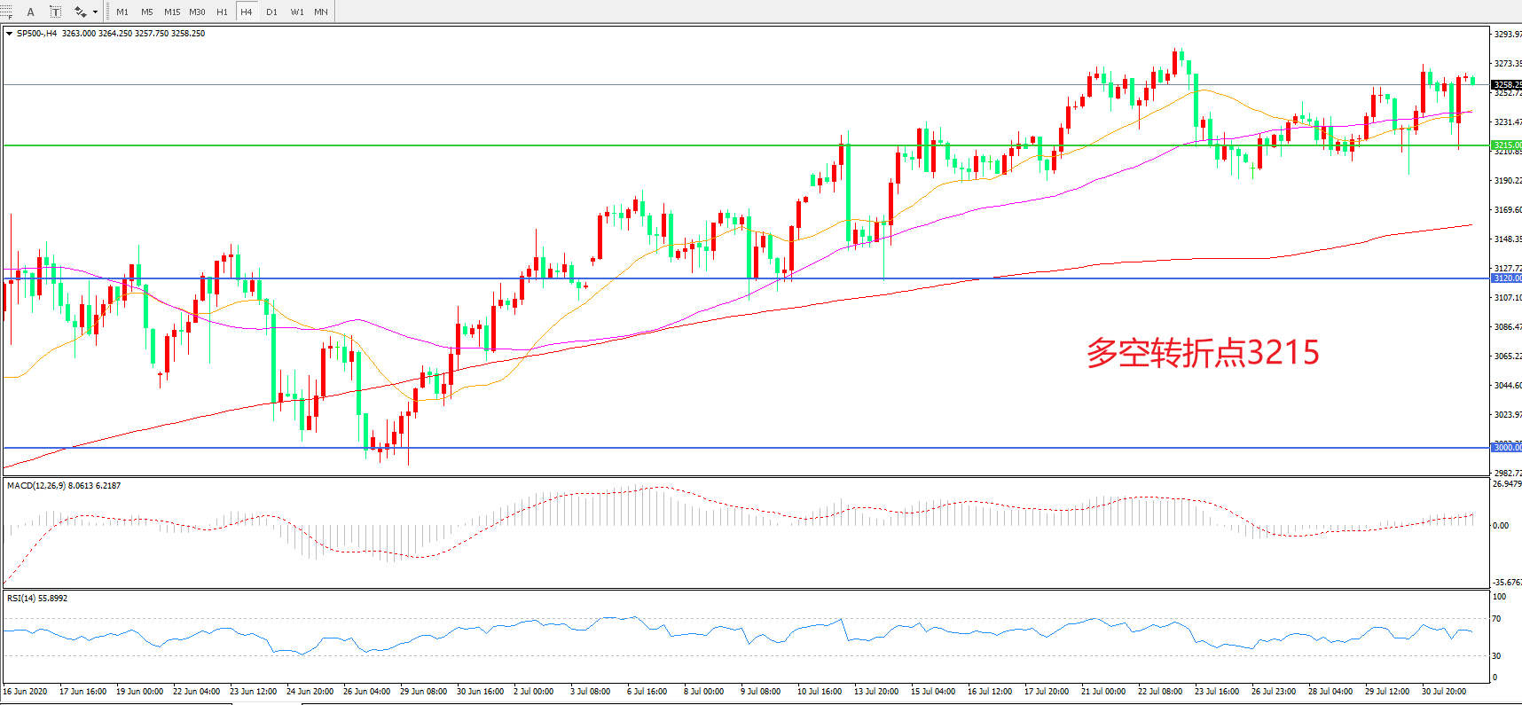 多空转折点:3215.00