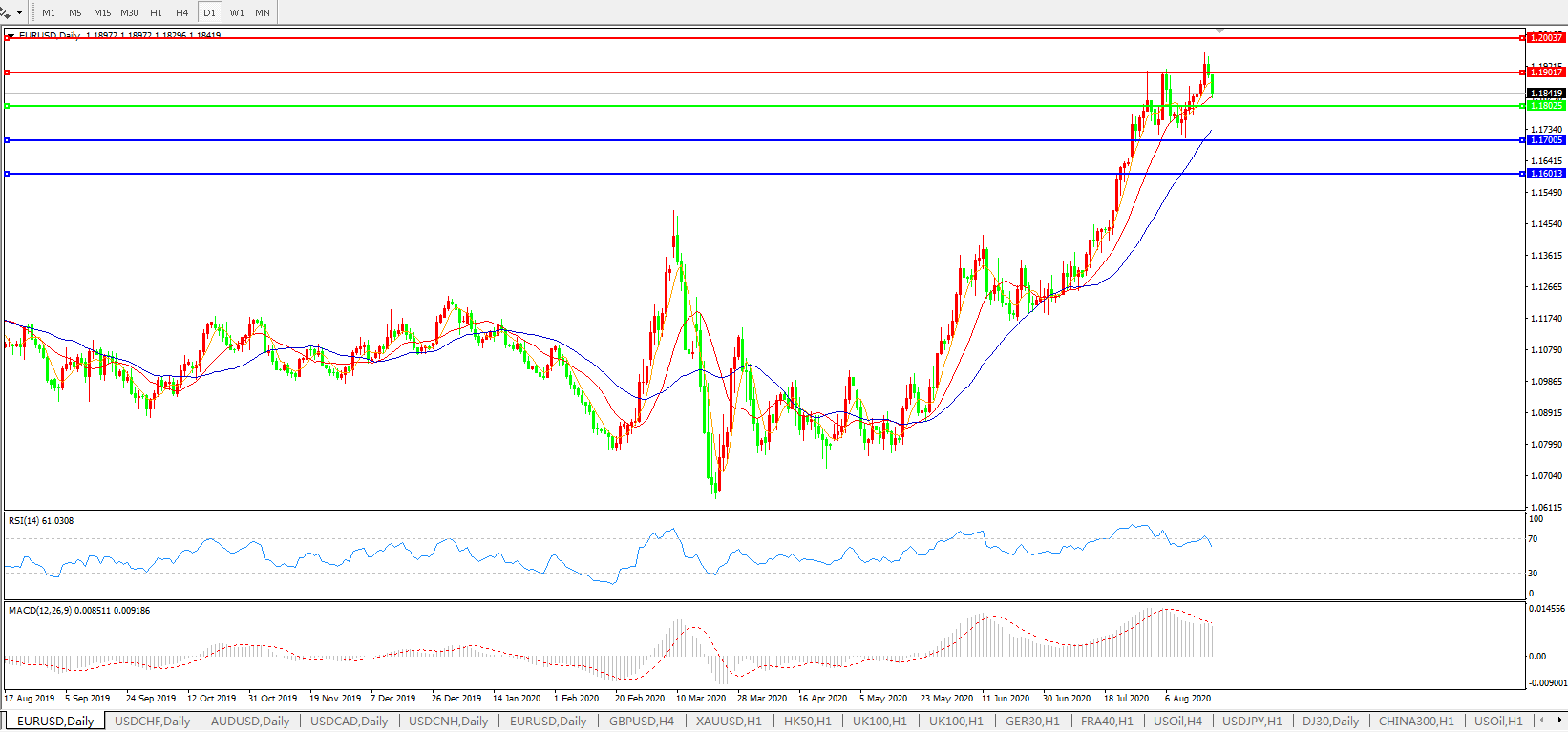 欧元兑美元EURUSD 日线图:
