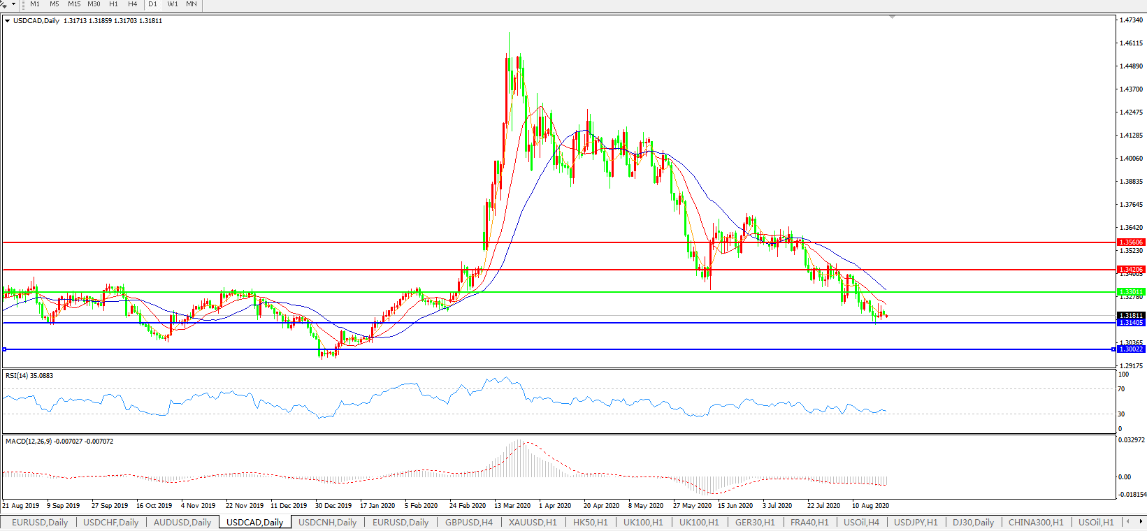 美元兑加元USDCAD 日线图:
