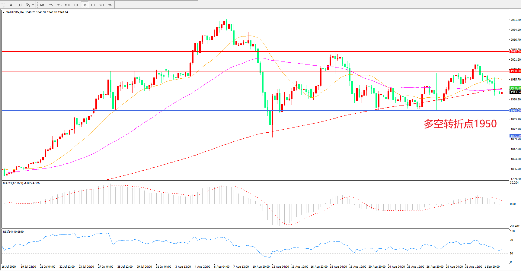 多空转折点:1950.00