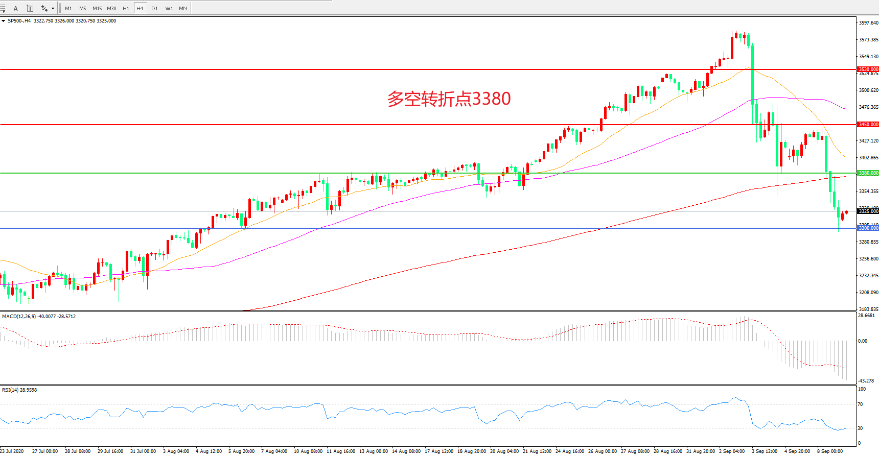 多空转折点:3380.00
