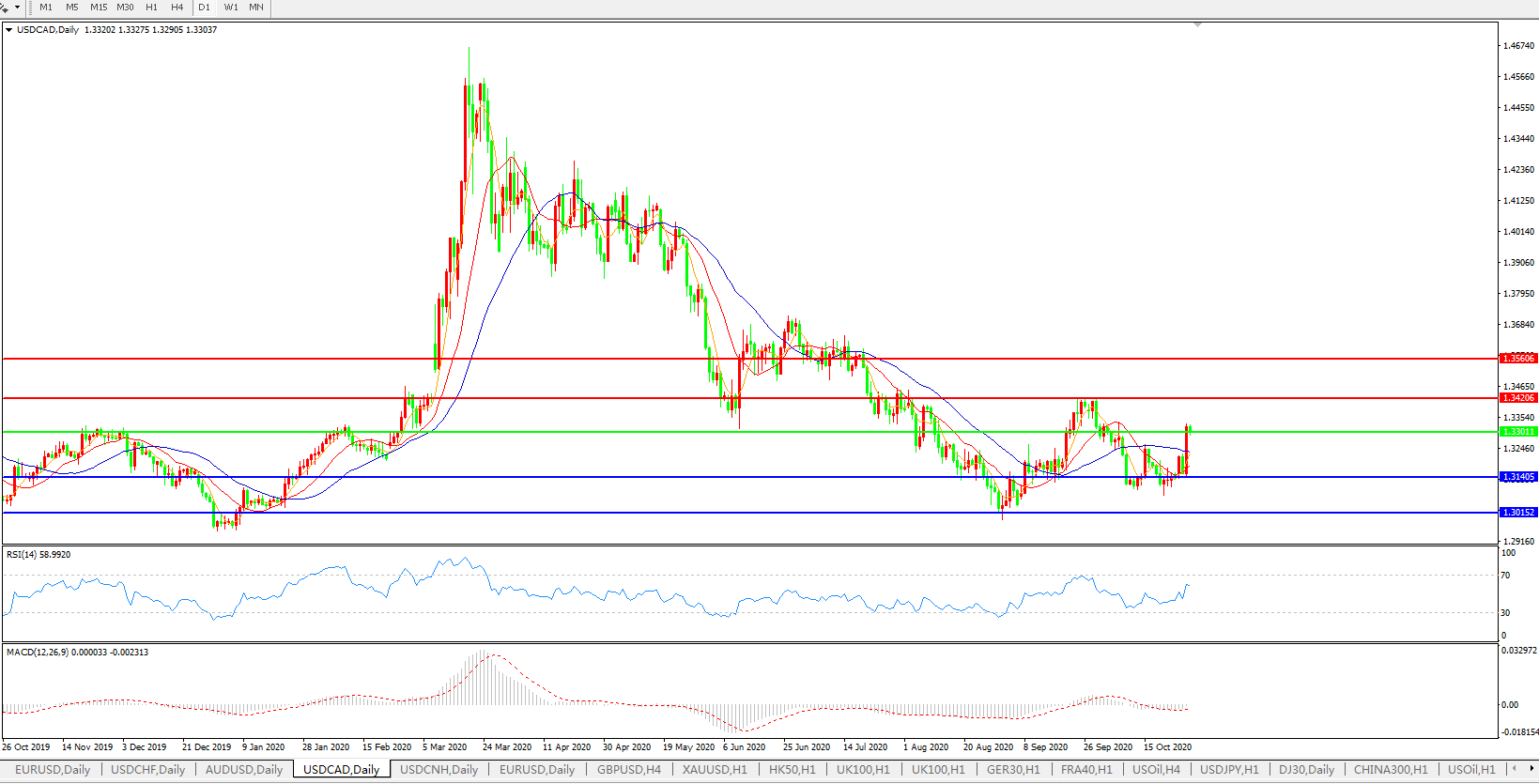 美元兑加元USDCAD 日线图: