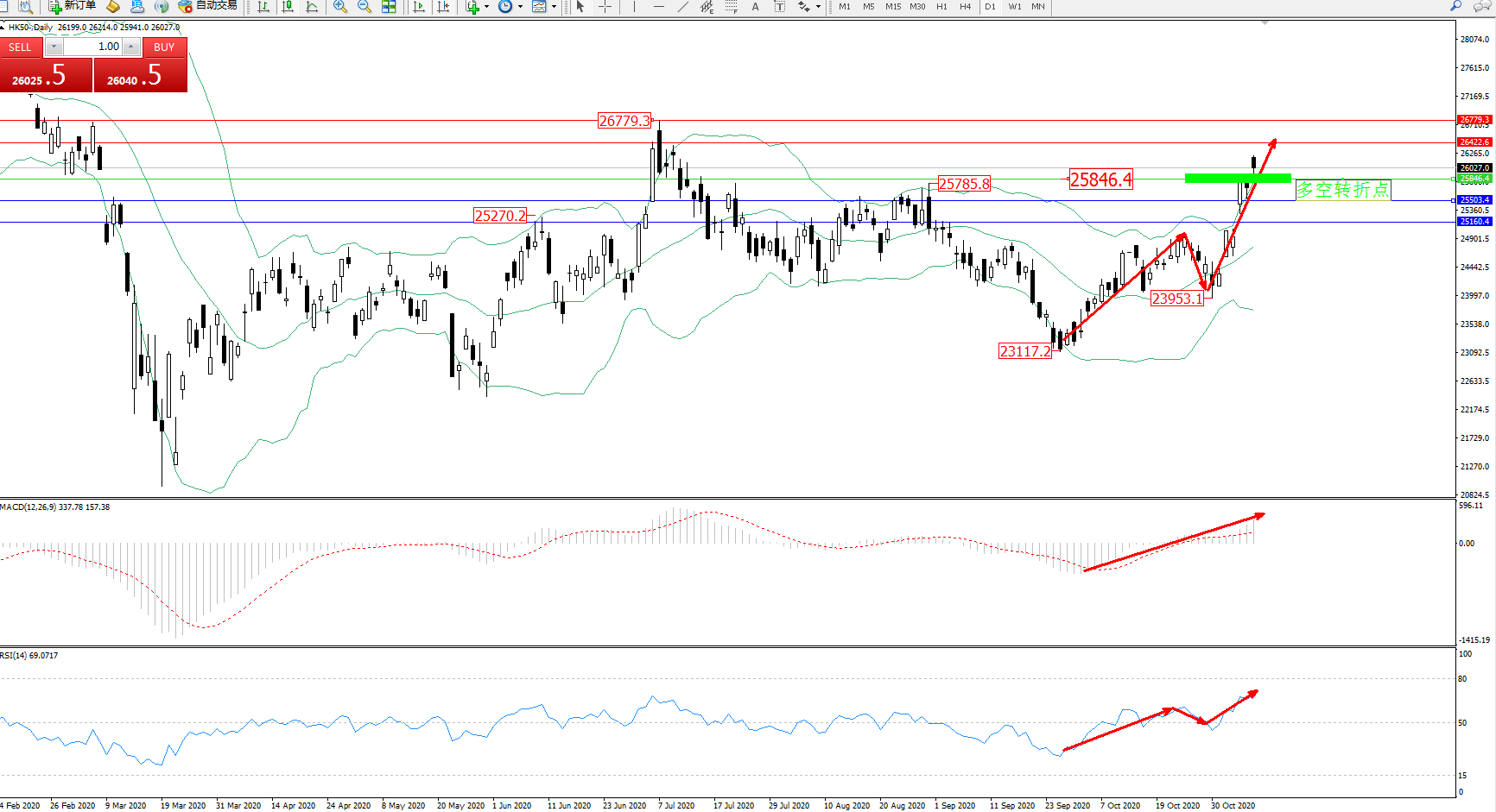 交易策略:25846上方看涨,目标26422、26779