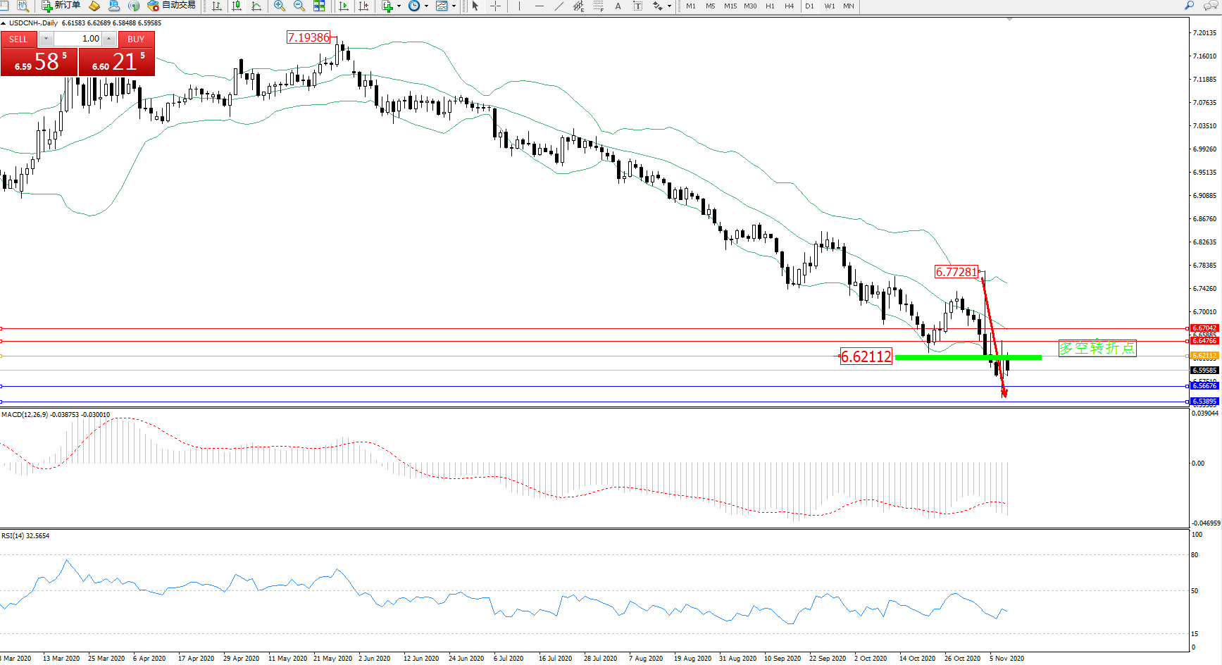 交易策略:6.62112下方看跌,目标6.56676、6.53895