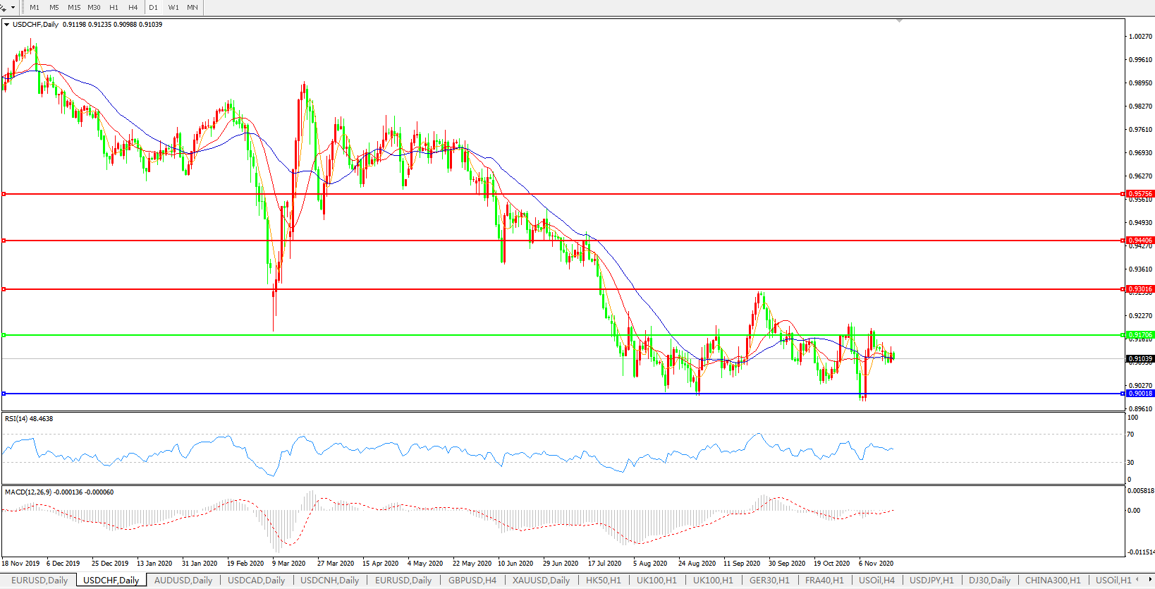 美元兑瑞郎USDCHF 日线图: