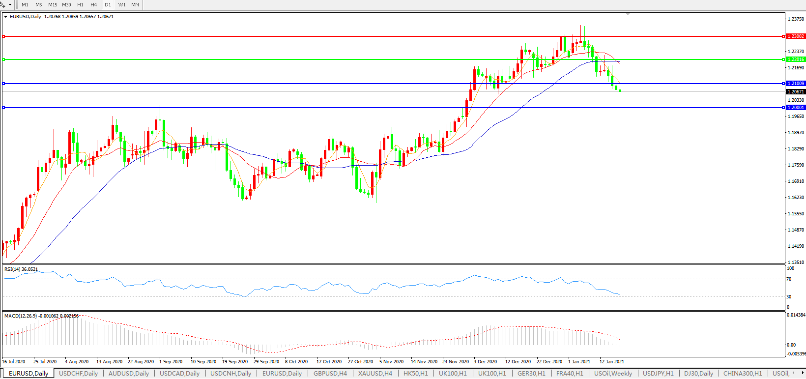 欧元兑美元EURUSD 日线图: