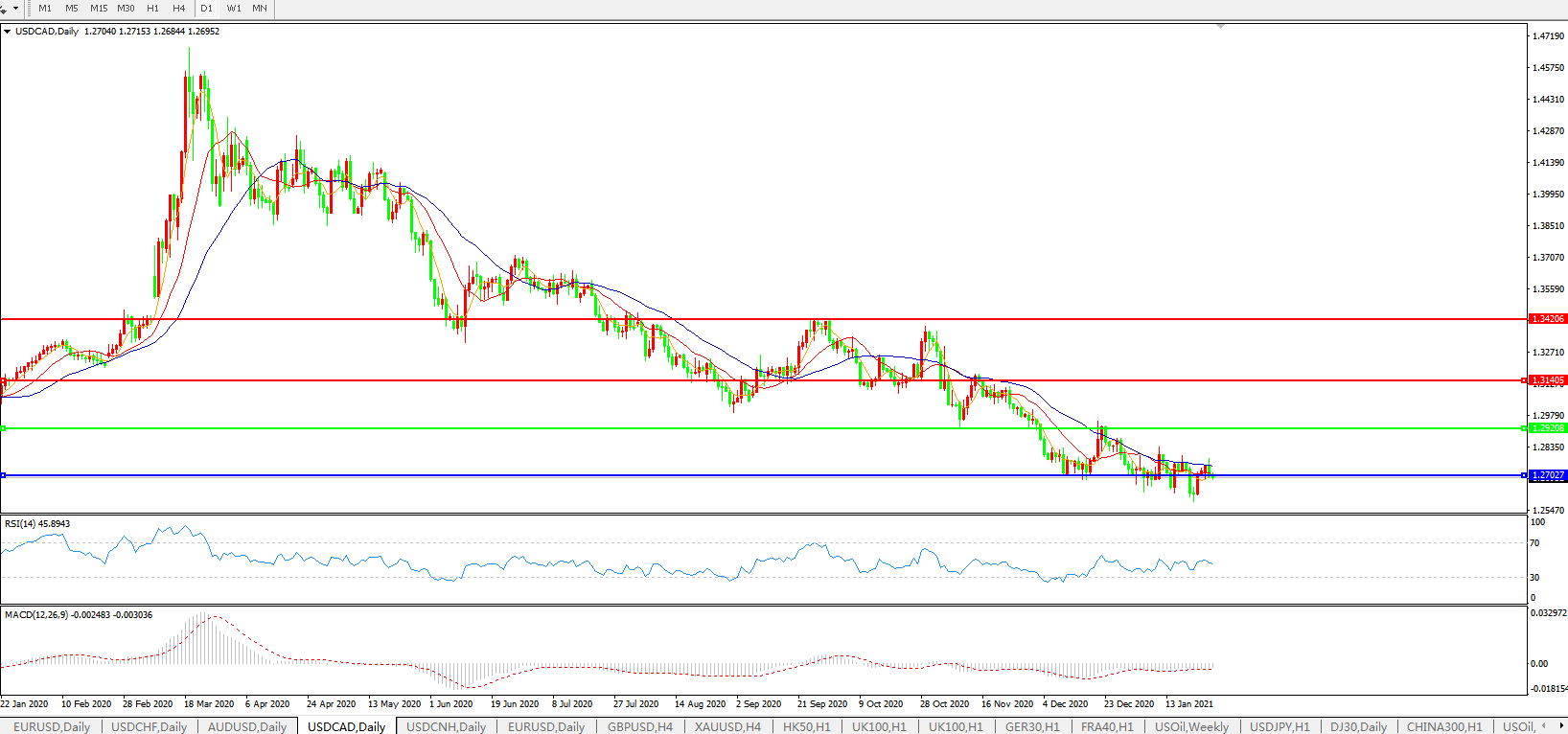 美元兑加元USDCAD 日线图: