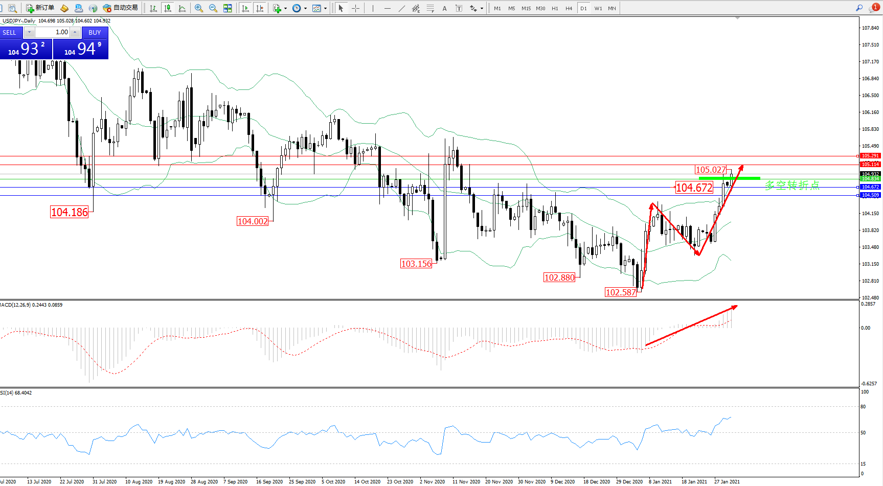 多空转折点:104.672