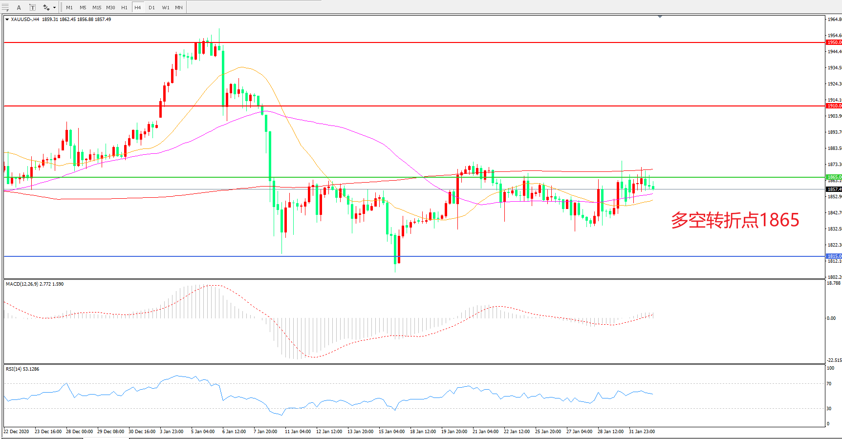 多空转折点:1865.00