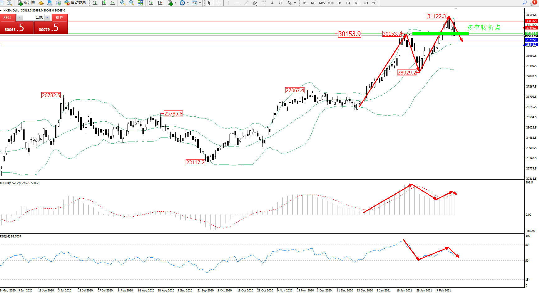 恒指HK50 ——日K线图显示: