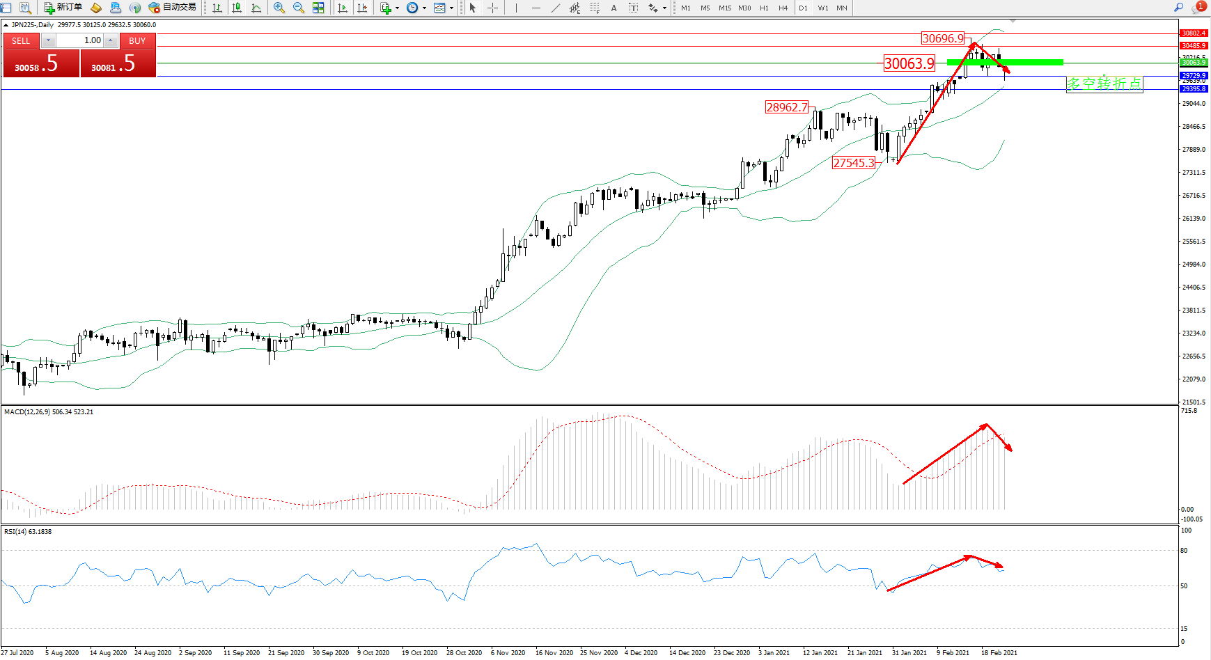 技术点评:多头动力延续布林带指标上轨附近节点持续震荡上扬态势良好,突破布林带指标上轨抵达30696附近节点后短暂整理回撤后震荡,纠结于布林带指标通道中上轨区间持续震荡平移,布林带指标呈张口走势持续中,关注上轨附近关键转折点,MACD指标处于多头区域维持整理平缓上移中,RSI指标处于多头区域整理向上移动后开始徘徊;