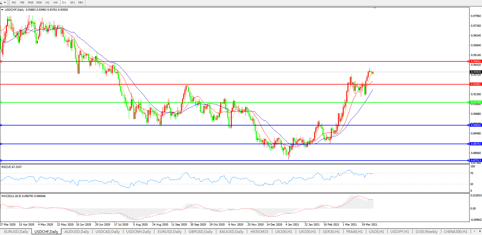 美元兑瑞郎USDCHF 日线图: