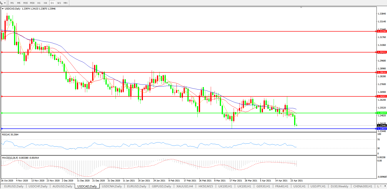 美元兑加元USDCAD 日线图: