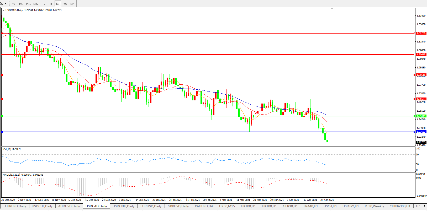 美元兑加元USDCAD 日线图:
