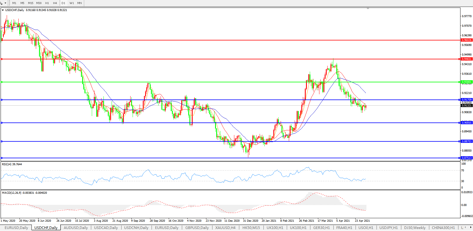 交易策略:0.9300下方看跌,目标0.9170、0.9000