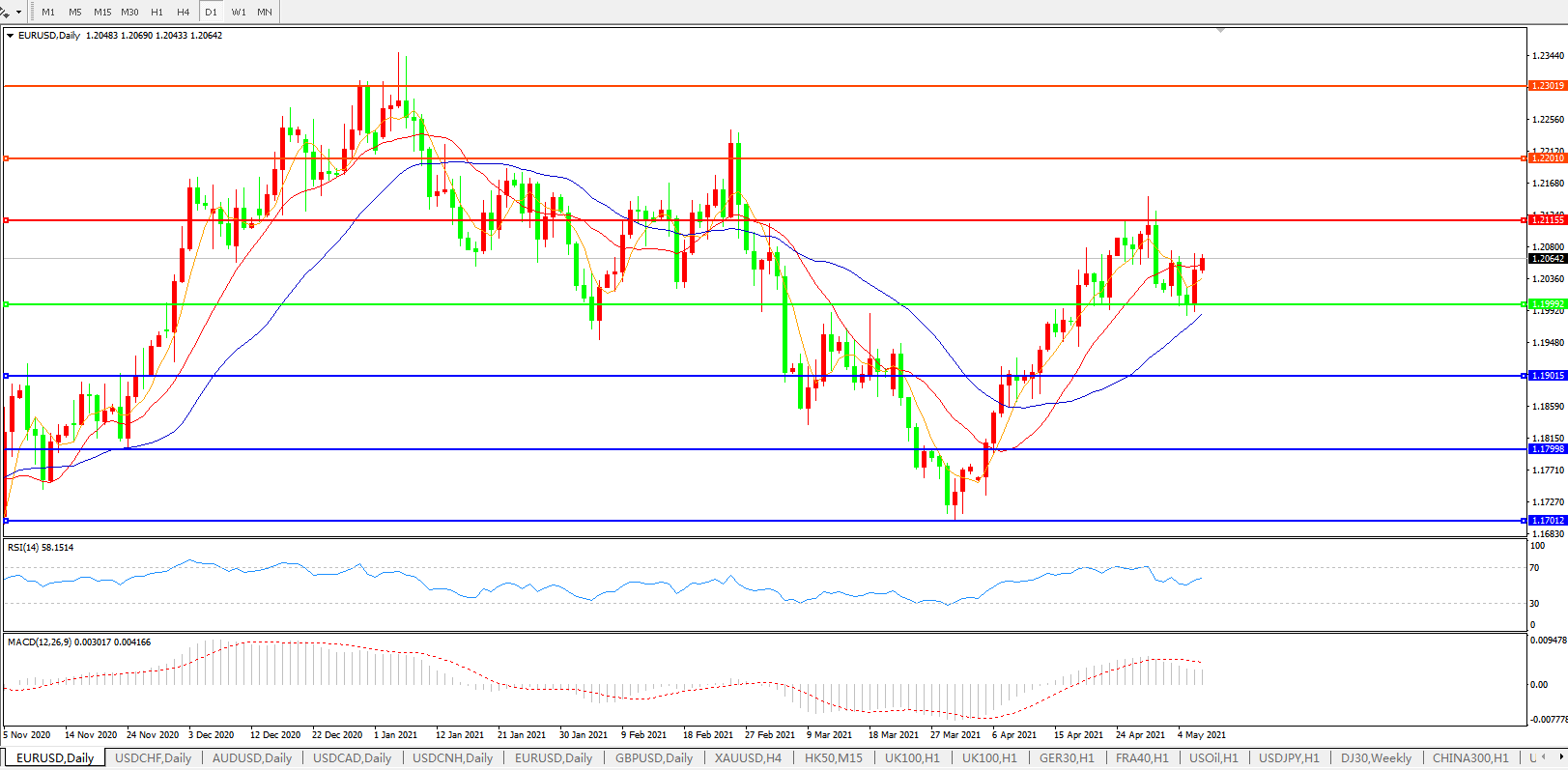 欧元兑美元EURUSD 日线图: