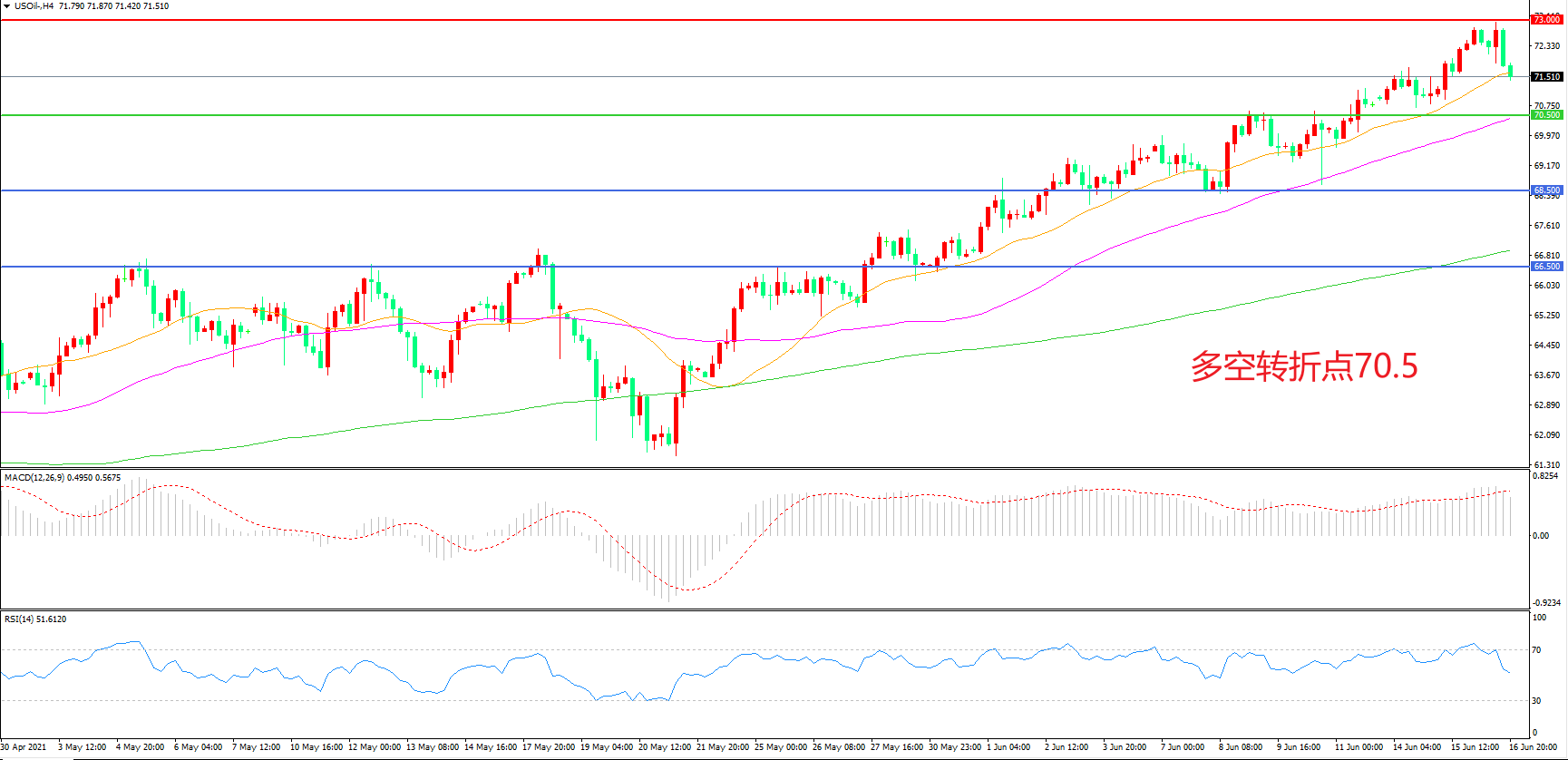 周三(6月16日),根据美国能源能源信息署公布的数据显示,当周EIA原油库存减少735.5万桶,好于预期,但令市场颇为意外的是,代表美联储官员对加息看法的“点阵图”显示,美联储在2023年将至少加息两次,多头信心受到影响,美国WTI原油小幅下跌,收报71.50美元/桶。中期来看,在供给端没有明显增加的情况下,油价自身的基本面仍然会比较强,飙升的需求和有限的供应将推动油价继续走高。