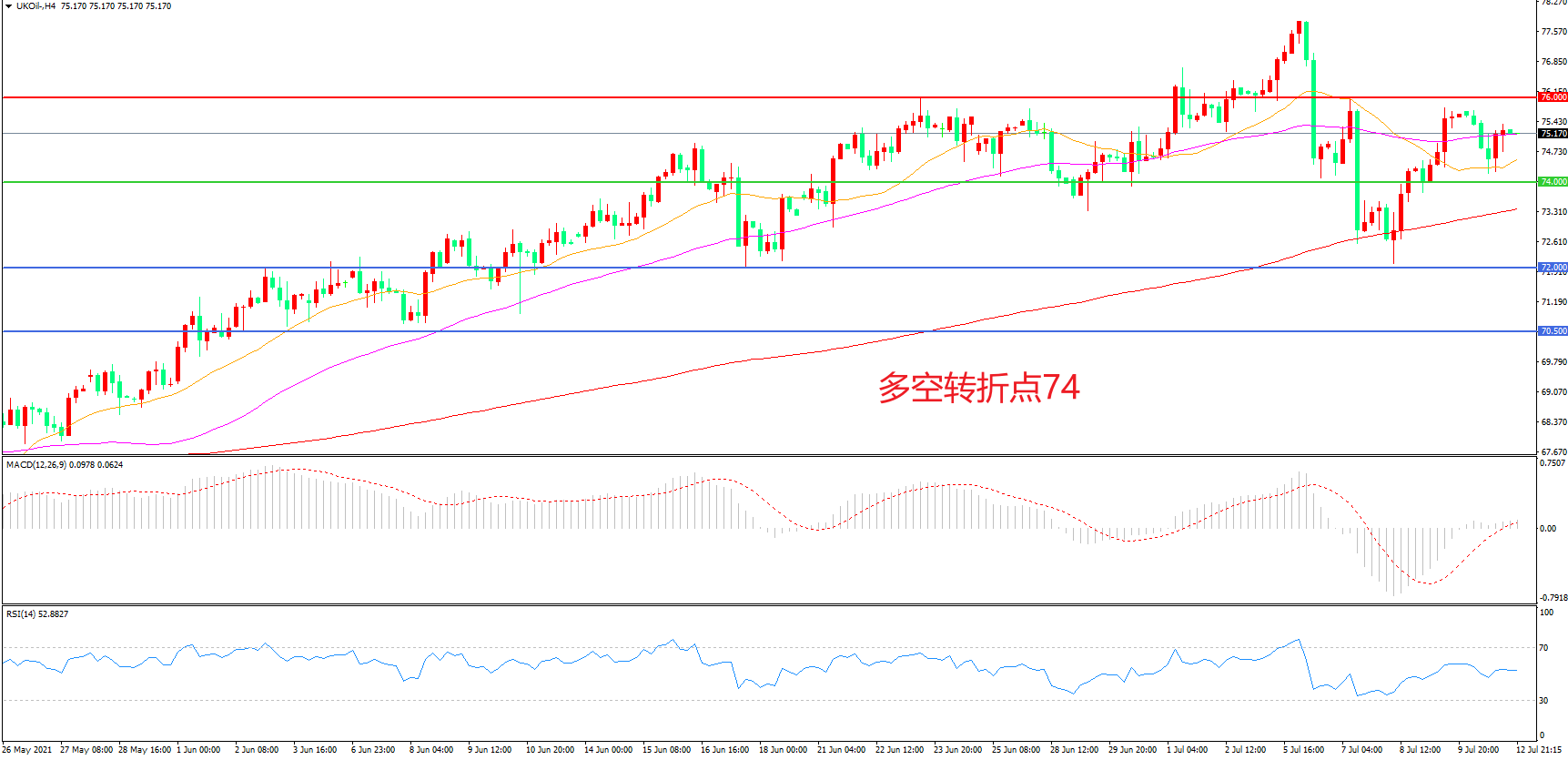 周一(7月12日),沙特和阿曼发表声明肯定了OPEC+所做的努力,同时表示将会继续执行减产政策,以维持当前原油市场的平衡。这从侧面反应出阿联酋方面并没有妥协的意思,目前原油市场多头想继续推涨,似乎又没有足够的确定性。空头想要入场,似乎又忌惮当前基本面的强势,布伦特原油延续高位震荡,收报75.17美元/桶。短期来看市场的震荡行情仍然没有结束,油价碎步上行的概率较大。