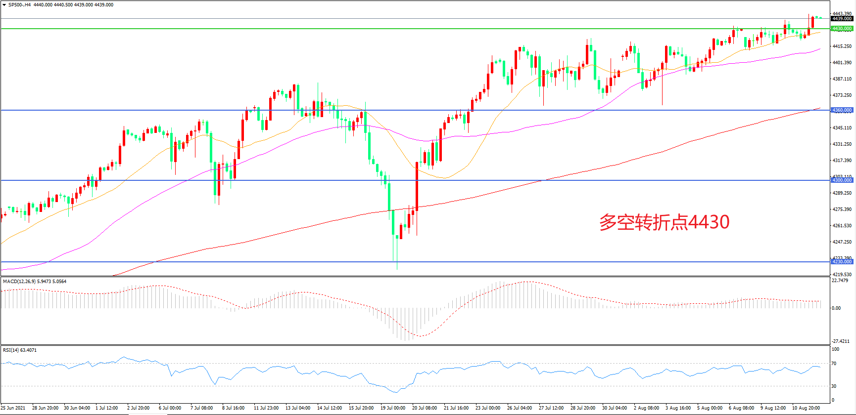 多空转折点:4430.00