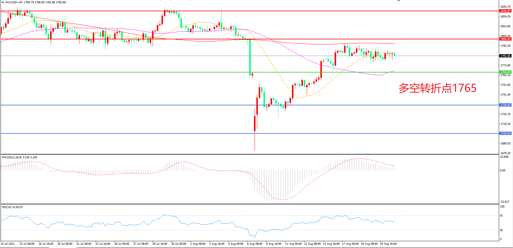 交易策略: 在1765.00之上看涨,目标1800.00 1830.00