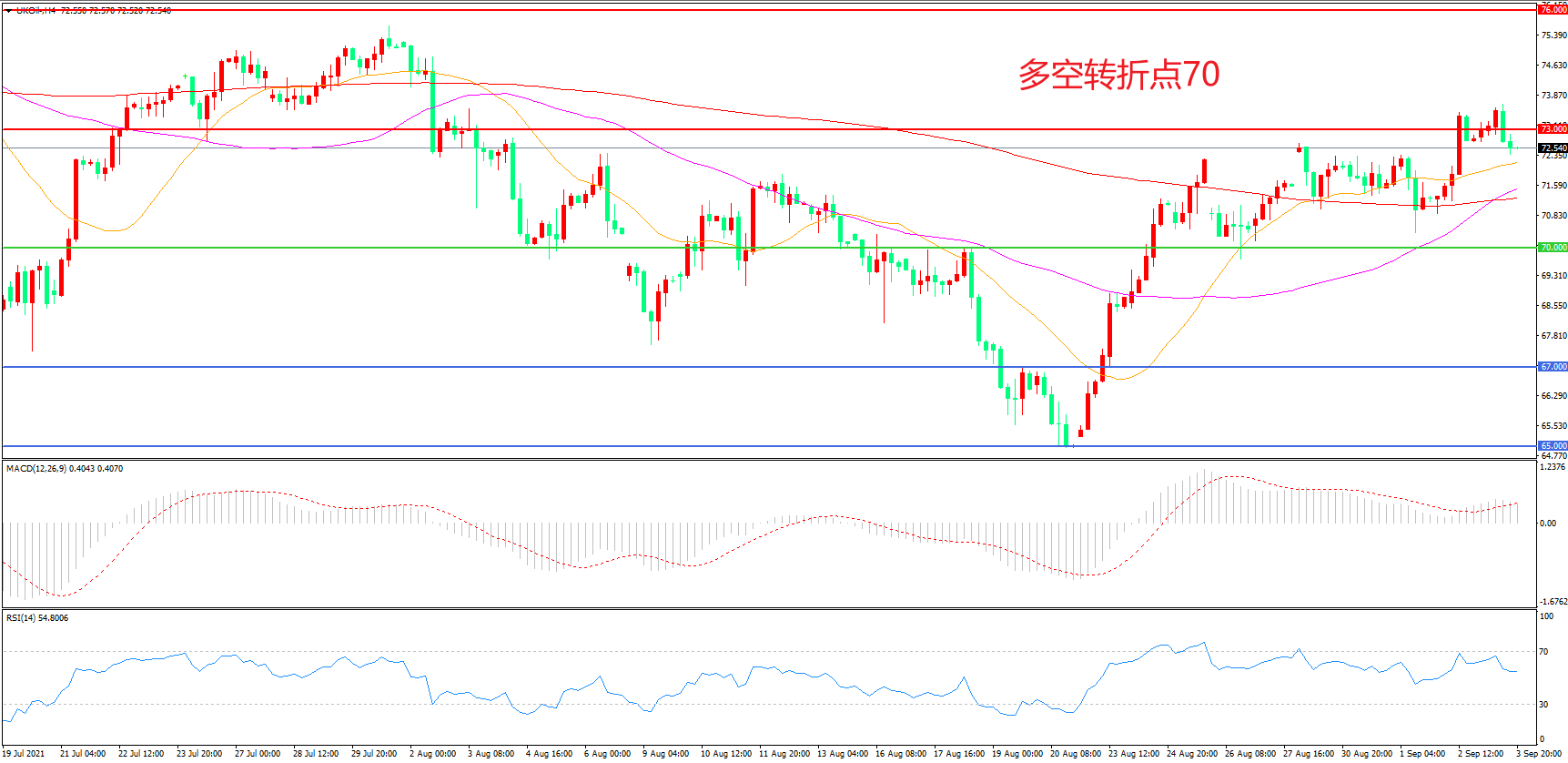交易策略:在70.00之上看涨,目标73.00 76.00