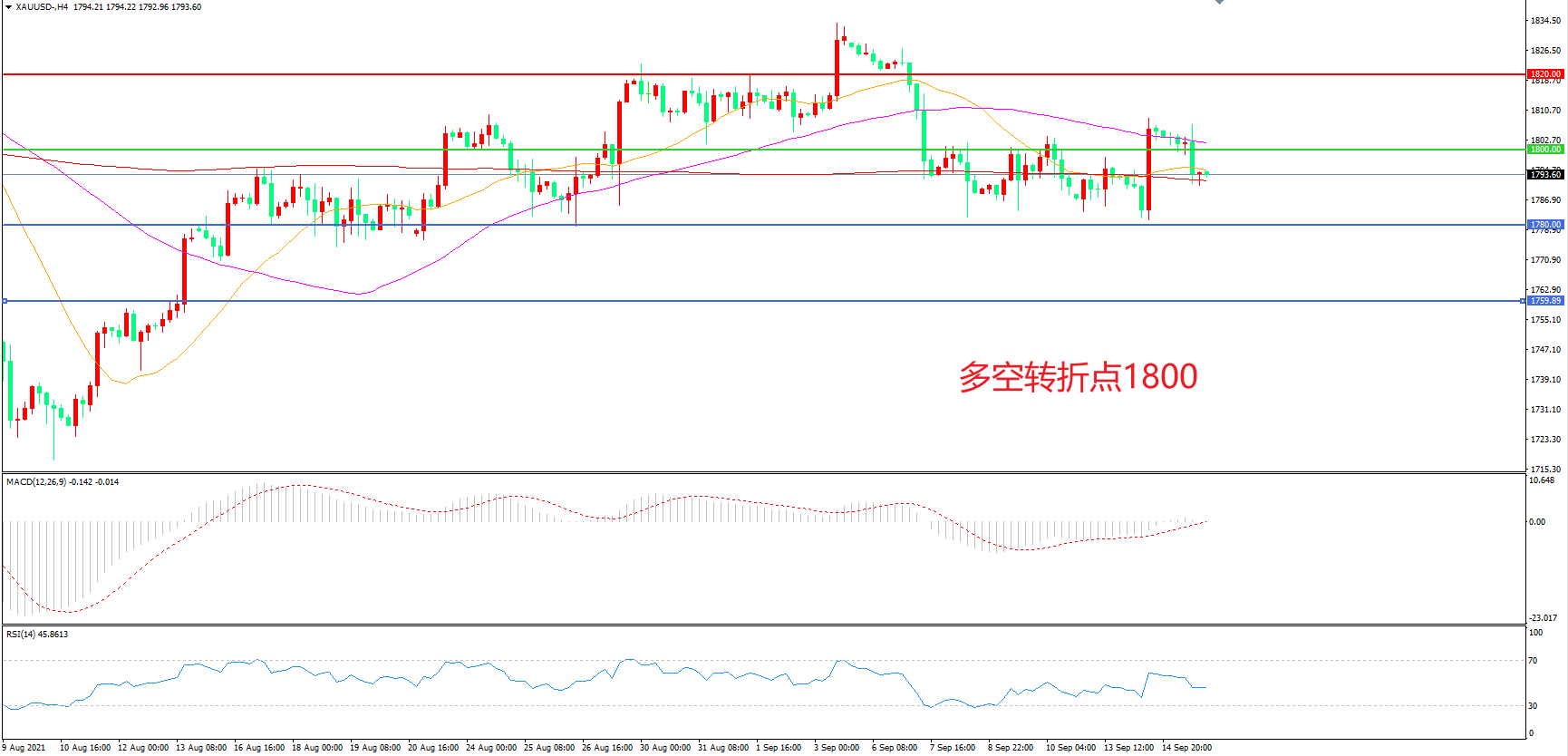多空转折点:1800.00