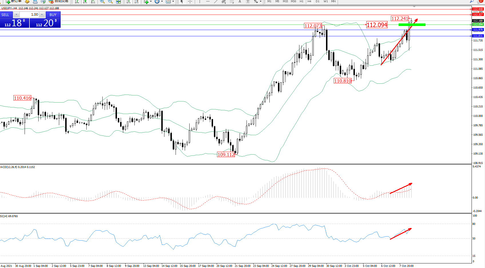 交易策略:112.094上方看涨,目标112.327、112.448