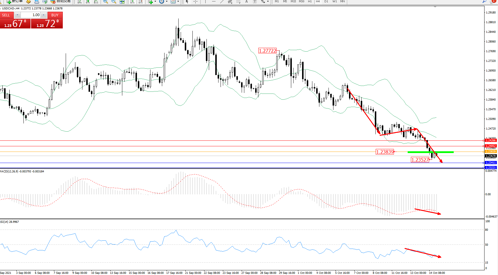 交易策略:1.23839下方看跌,目标1.23411、1.23221