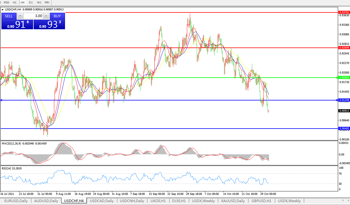 交易策略:0.9180下方看跌,目标0.9120、0.9040