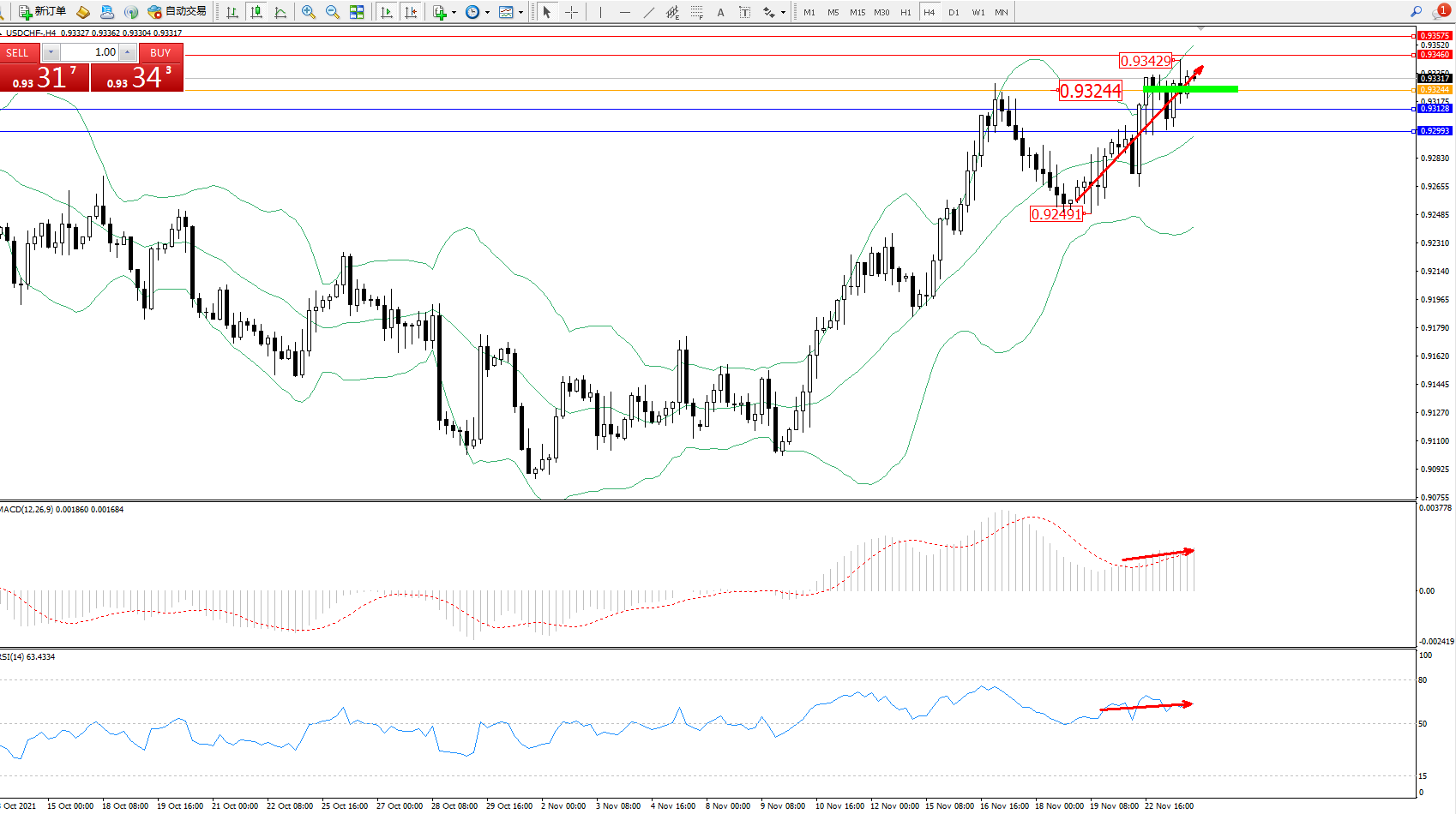 技术点评:多头动力延续布林带指标中上轨区间持续震荡上扬,高位抵达0.93429位置节点后短期遇阻整理,高位短期或维持震荡走势,布林带指标呈张口走势后开始有收口迹象,MACD指标处于多头区域维持整理平移,RSI指标处于多头区域持续徘徊中;