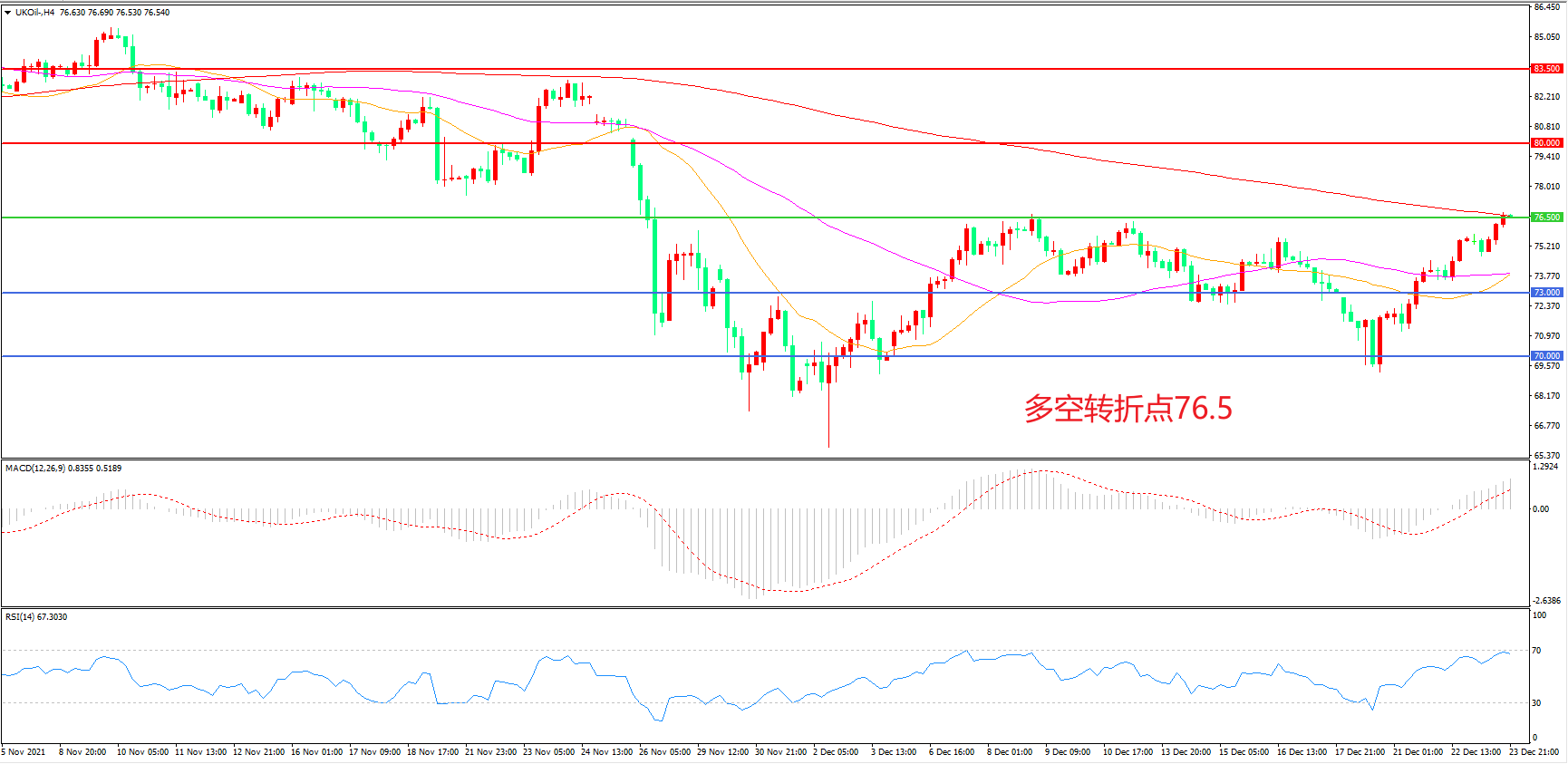 交易策略:在76.50之上看涨,目标80. 00              83.00