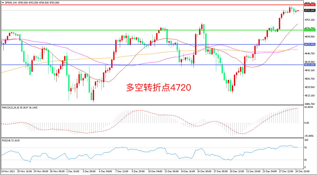 交易策略:在4720.00之上看涨,目标4800.00                           4880.00