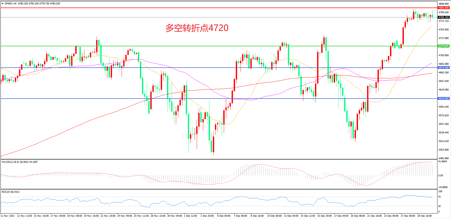 交易策略:在4720.00之上看涨,目标4800.00 4880.00