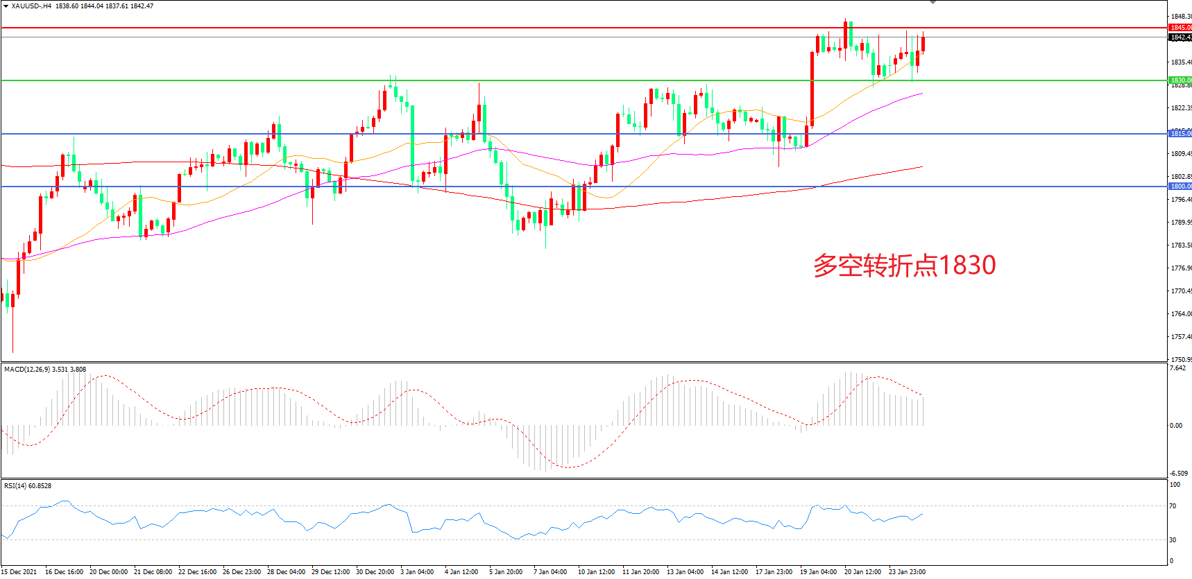 交易策略:在1830.00之上看涨,目标1845.00       1860.00