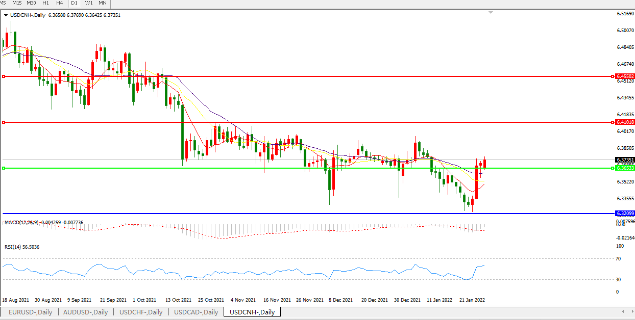 备选策略:在6.3650之上,看涨,目标价位为6.4100,然后为6.4550。