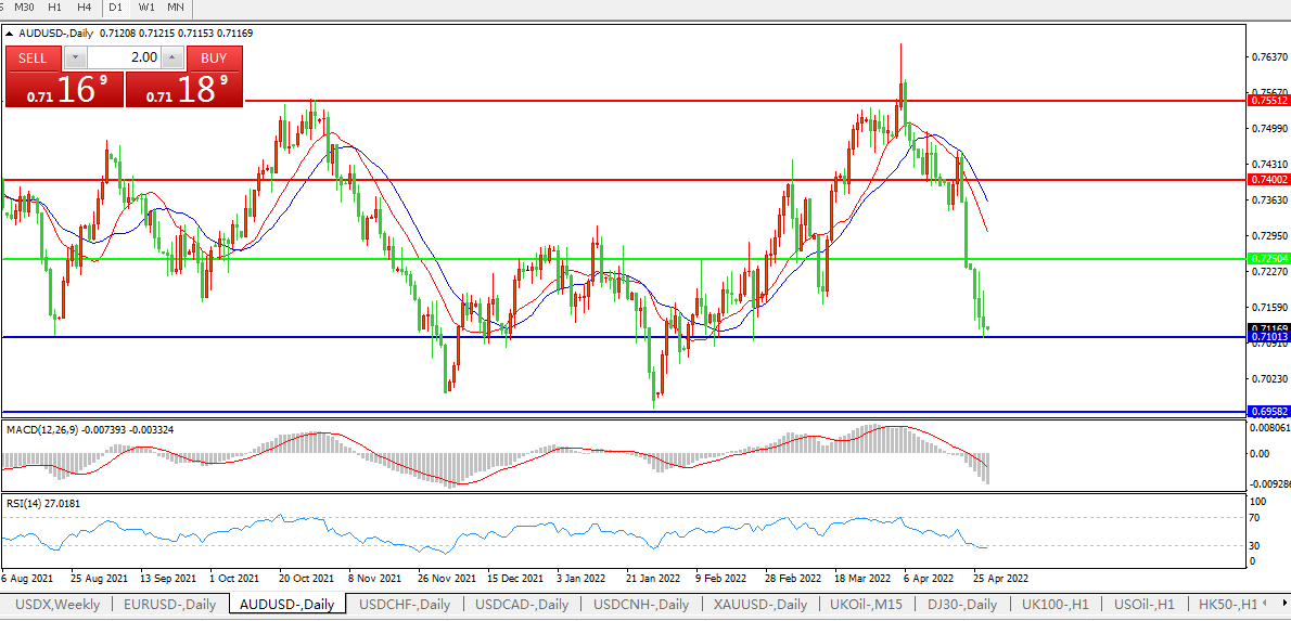 交易策略:0.7250下方看跌,目标0.7100、0.6950