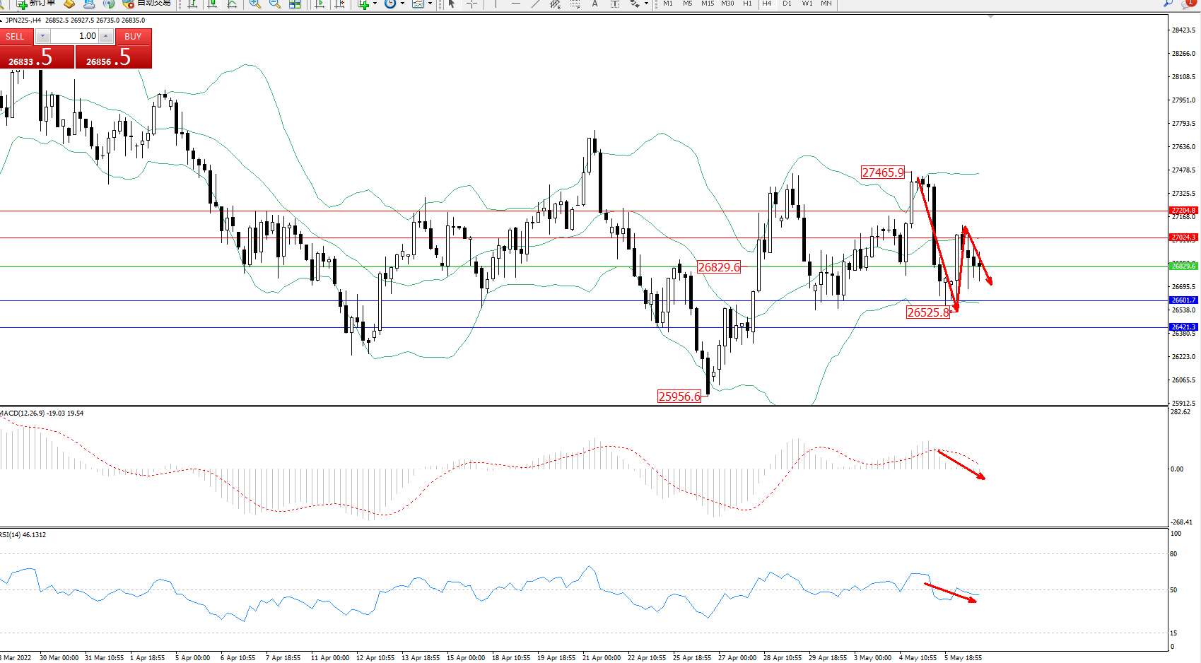 日经225指数5月6日(周五)收盘上涨170.97点,涨幅0.64%,报26989.50点。日本最快将于本月尝试向接种了疫苗的外国游客开放边境,这可能会为该国境况不佳的旅游业带来一线生机。日本富士新闻网引述多名日本官员的话称,来日本旅行的人必须接种过三针新冠疫苗,并且参加固定行程的旅行团。有限恢复入境旅游将被视为一项试验,如果新冠感染没有扩散,该计划将扩大。此前,日本首相岸田文雄在伦敦表示,他计划从6月起与其他富裕国家一样,放松与疫情相关的边境限制。三井住友信托银行市场策略师Ayako Sera表示,与美国相比,日本的经济复苏非常缓慢,所以从这个意义上说,日本的重新开放将有助于提高对国内复苏的预期。